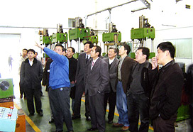 在姜董事長(cháng)、陸總經(jīng)理、鄭總工程師等的陪同下,專(zhuān)家教授參觀(guān)了生產(chǎn)車(chē)間。